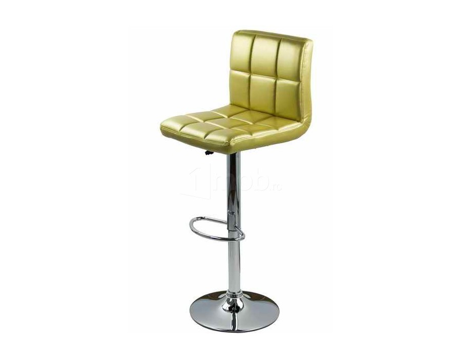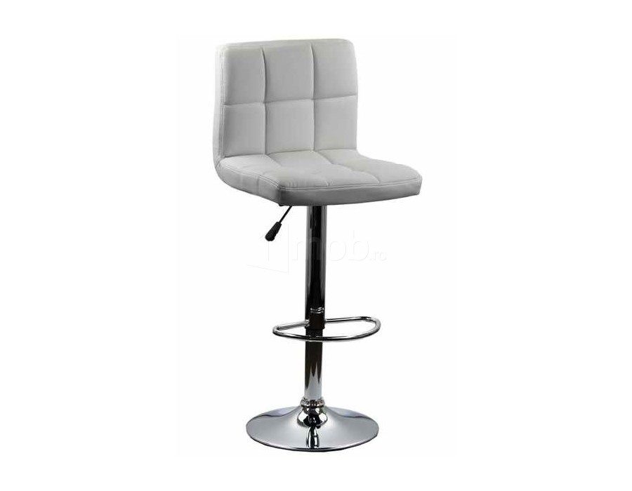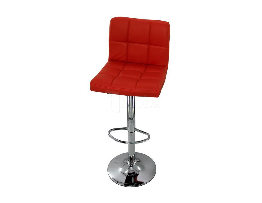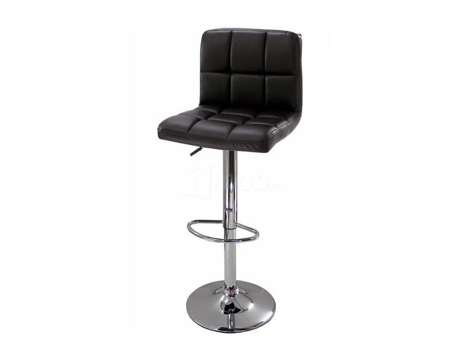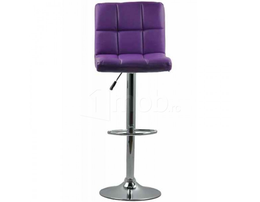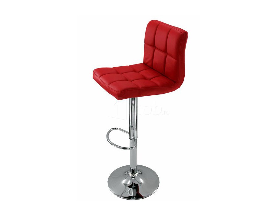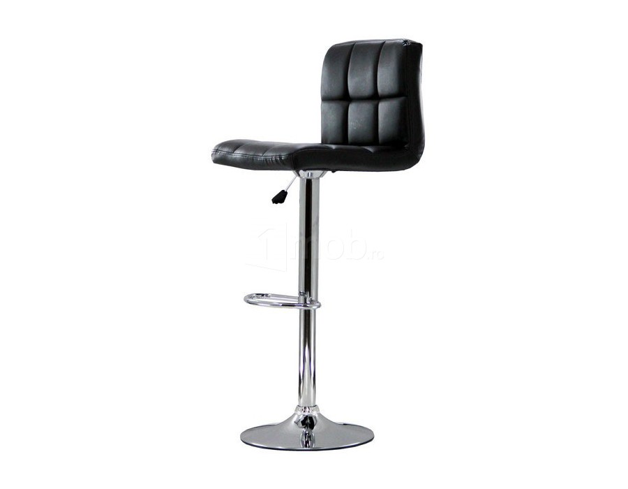 Scaun de bar rotativ, reglabil pe inaltime, sezutul tapitat cu piele ecologica, piston cromat cu gaz, baza si suportul pentru picioare executate din otel cromat.