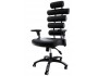 Este proiectat pe o structura metalica, peste care sunt aplicate pernele din piele ecologica ce asigura suportul lombar al scaunului.