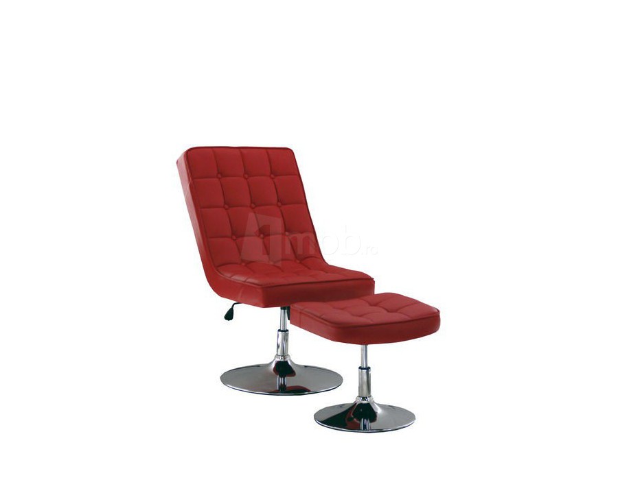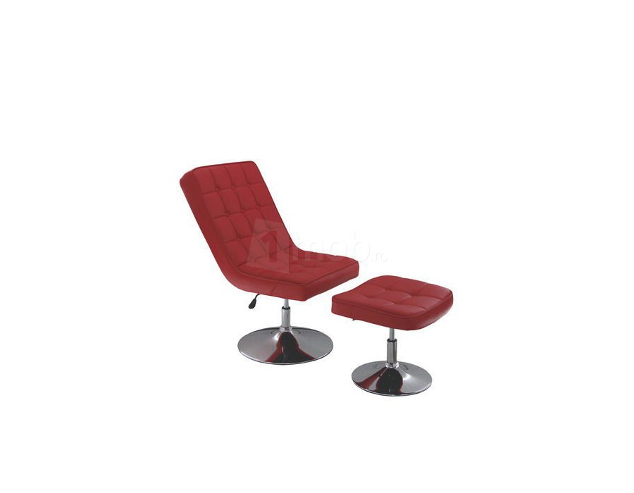 Scaunul de relaxare REL 221 este executat cu fata din piele ecologica, folosit in special ca si chaise lounge. Este alcatuit din baza metalica cromata, piston cu gaz pentru reglare pe inaltime, precum si un taburet pentru sprijinirea picioarelor, deasemenea reglabil pe inaltime.