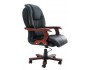 Fotoliu de birou din piele, avand fata si spatarul (suprafata de contact) din piele naturala, spatele din piele ecologica, baza din otel acoperit cu lemn, bratele din lemn. Produsul este prevazut cu cilindru pneumatic de ridicare/coborare si mecanism de balans.